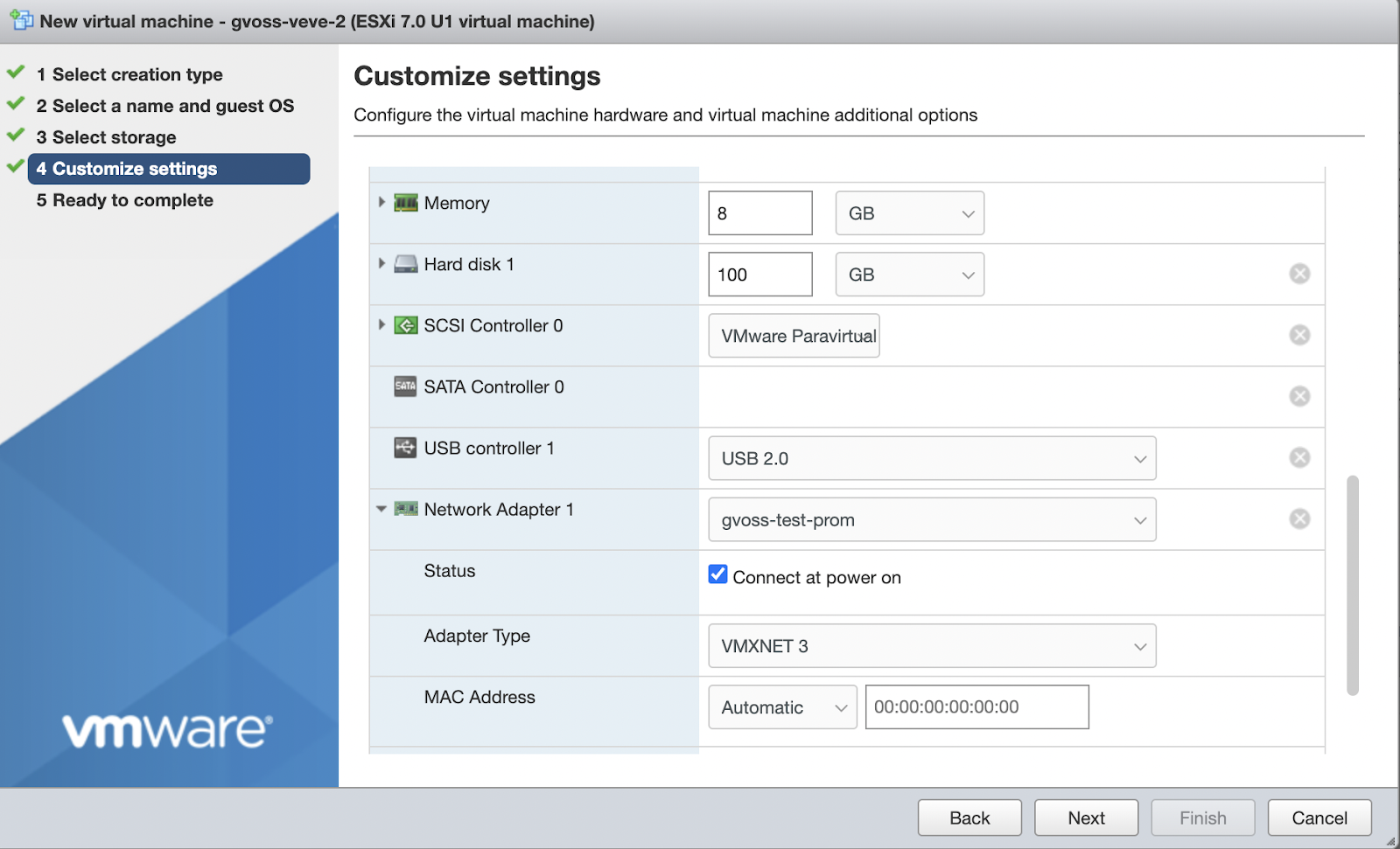 - Create a hardware.json file for an ESXi VM on your local machine. For information about the hardware.json file, see our guide to Hardware models.